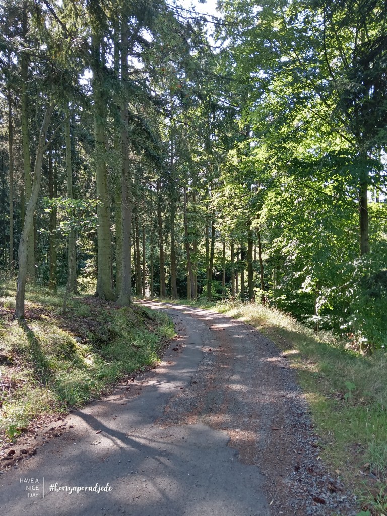 Tak se mi nějak podařilo v lese zabloudit, absolutně mimo cestu a co na to navigace? Mlčí. Tak jsem se drápal s horským kopcem do brutálního kopce mezi smrčky nebo po pás ve vysoké trávě, pošlehaný od kopřiv. Po asi po 45min. se dobrá věc podařila a já se protlačil i s mým mtb ořem zpět na lesní asfalt. To bylo slávy.