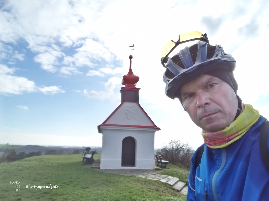 Z Měnína kolem Balatonu, Sokolnice, Ponětovice, Jiříkovice a rázem jsem byl na tom pověstném kopečku s kapličkou jejíž červená střecha je vidět již zdaleka. Nahoře byl nádherný klid a vystřídali se tu jen dva lidé. Dostatek času na fotografování a klidné rozhlédnutí. Původně jsem se chtěl odsud už začít točit na Popovice, ale když bylo tak krásně 😁….