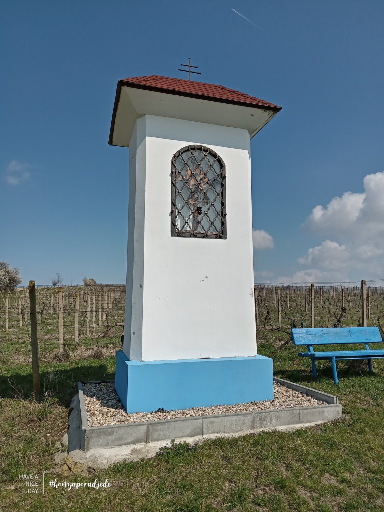 Pak jsem v dáli ve vinohradech viděl Boží muka a hlavně asfaltu, tak jsem se propracoval na asfalt tak, že jsem prostě kilometr osetého pole prostě přejel. Všude byl nádherný klid, přesně to co mám rád. Pobloumal po vinohradech a skvěle si odpočinul i když vyvinuté úsilí nebylo zrovna malé.