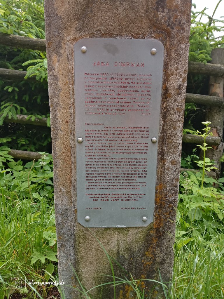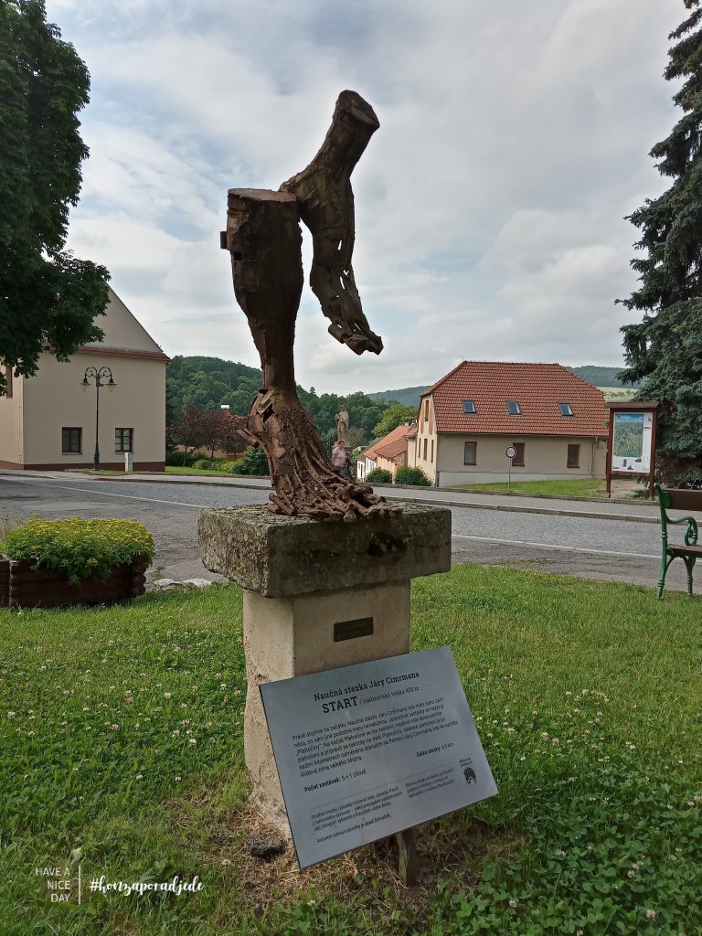 Vždyť sama stezka začínající na náměstí v Lomnici u Tišnova není nikterak dlouhá, má 7 zastavení a začíná v 400 mnm. Konečná štace u hájenky Sýkoř je už ale v 680 mnm. A končí „plostikou”, ano plostikou nikoli plastikou génia Járy Cimrmana od Jožky Zahradníka z Vanglu.