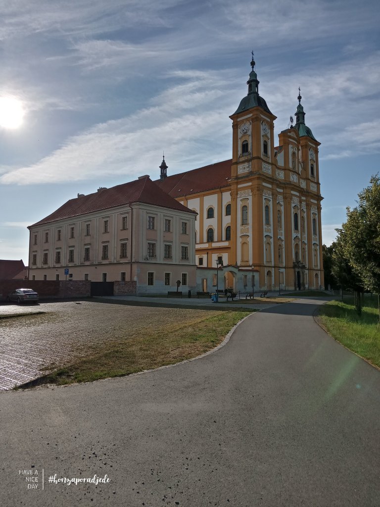 Ráno byla ještě silnice celkem prázdná a já s ní sjel jen jednou. Nemohl jsem si nechat ujít Poutní chrám Očišťování Panny Marie, který se nachází jen kousek od silnice 435. Je to monumentální stavba! Pak jsem se už dostal na silnici, která mě přivedla až do centra Prostějova. Hlavní náměstí s památkami je úchvatné místo a lze tu zmizet pod stromy slunečním paprskům. Na lavičce to odpočívala socha, snad Jiřího Wolkera. Tak sem si s dovolením přisedl. Je tu toho ale spoustu. Stará (nyní muzeum Prostějovska) i Nová radnice, Národní dům, kostel Povýšení Sv. Kříže, Mariánský sloup občas na osvěžení i nějaká fontána. Čehož jsem využil. Pak se zeptal securiťáků před radnicí na cestu a po Plumlovské ulici vyrazil z města.