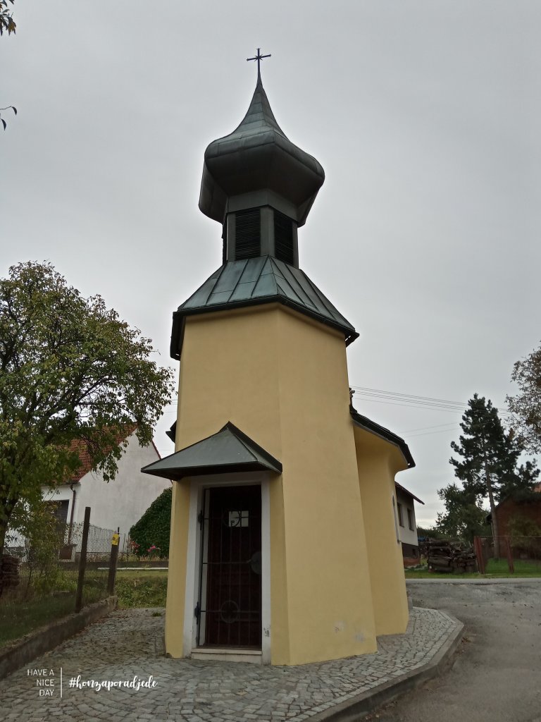 Vyšlapal do kopečka a na křižovatce jako bych se vracel nazpět odbočil jsem na Kuřimskou Novou Ves. Toťkaj mají hezký kostelík, prý Sv. Antonína Paduánského. Jedna zajímavost, stavba kostela započala až v roce 1933 a vysvěcen byl v roce 1937. Tady jsem pokecal s mladou paní, která mi dala tip na osadu Pánov a byla to dobrá volba. Dal jsem pokračoval mezi poli Svazenky Vratičolisté, abych dorazil do místa odkud jsem se vydal do Kuřimské Nové Vsi. To už jsem ale sjížděl do Katova. Byl čas něco malého sníst a krásné místo se skýtalo na lavičkách naproti kapli Narození Panny Marie. Nepohrdl jsem obloženým celozrnou bulkou, oplatkou v čokoládě a Svijanským mázem v plechu. Ač Svijany nesnáším tentokrát bodly. Navíc jsem si i trochu odpočinul na takovém krásném místě.