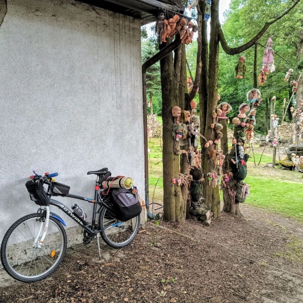 Opravdu strašidelné nebo ještě lépe morbidní místo je tato řekněme výstava „oběšených panenek”. Díky Radka Malá za tip. Nedalo mi to a zajel jsem se na to místo včera v rámci mého třídenního cyklotripu podívat.
