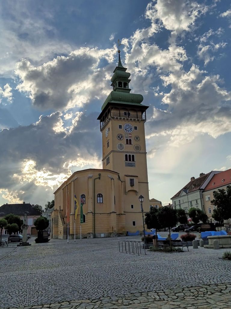 Retzu je útulné městečko s 4250 obyvateli, kde je opravdu co vidět. Stačí jen projet hradební bránou na náměstí. Přímo na něm najděte kašny, pranýř, Mariánský sloup a především radnici s vyhlídkovou věží. Za dvě éčka se vám otevře turniket a už můžete po schodech šlapat až na ochoz věže. Výhled odsud je fantastický a městečko máte jak na dlani. Tentokrát jsem si výstup odpustil, protože už jsem nahoře asi 2x byl.