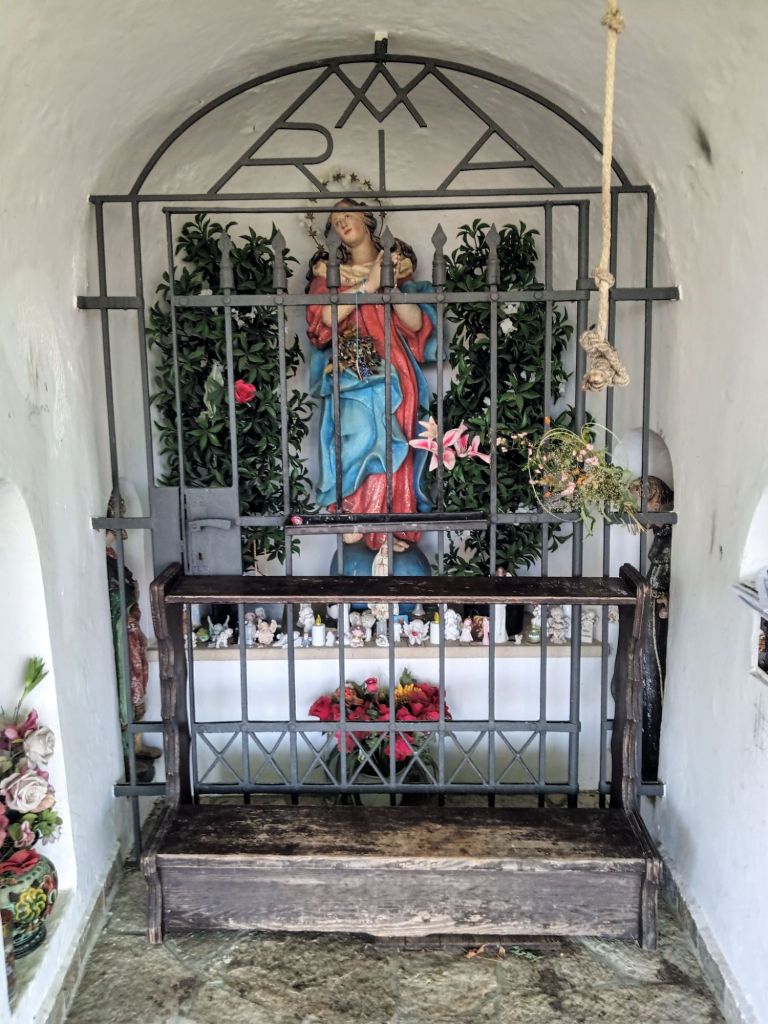 Nejprve jsem však musel vyšlapat 10% táhlé stoupání které dál vede k Feste Kaja či na Hardeg. Heiliger Stein je soustava dvanácti kamenů nabitých pozitivní energii, hned v sousedství jsou odkryté základy starého kostela s vyhlídkou a nadherná kaplička z roku 1680. Chvíli jsem nehnutě pobyl a jen se koukal dolů. Pak přišel jeden pejskař, tak jsme prohodili pár vět a já se definitivně vydal do campu.