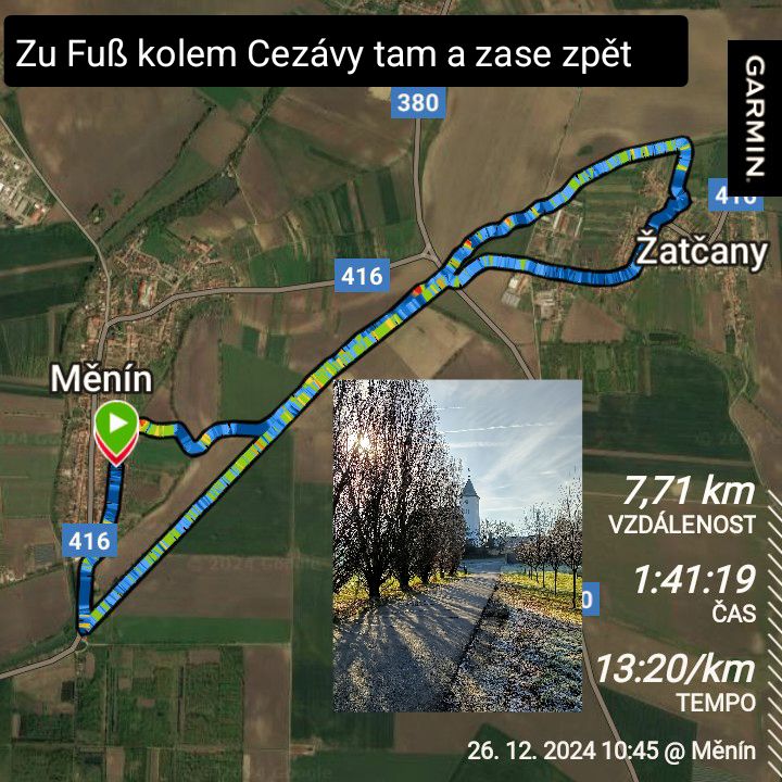 Podél Cézavy do Žatčan a po druhé straně hráze zase zpátky do Měnína. Sice bylo celkem chladno, ale sluníčko hřálo a já se tak došoural až ke kostelu Nejsvětější Trojice v Žatčanech. V kapli tam hoří Betlémské světlo a jsou vystaveny hezké Betlémy. V klidu jsem si je prohlédl, udělal pár obrázků a vydal se zpět na zpáteční cestu. Záda jsem sice tak úplně nerozhýbal (ty pustí později), ale nevadí alespoň jsem se pěkně prošel.