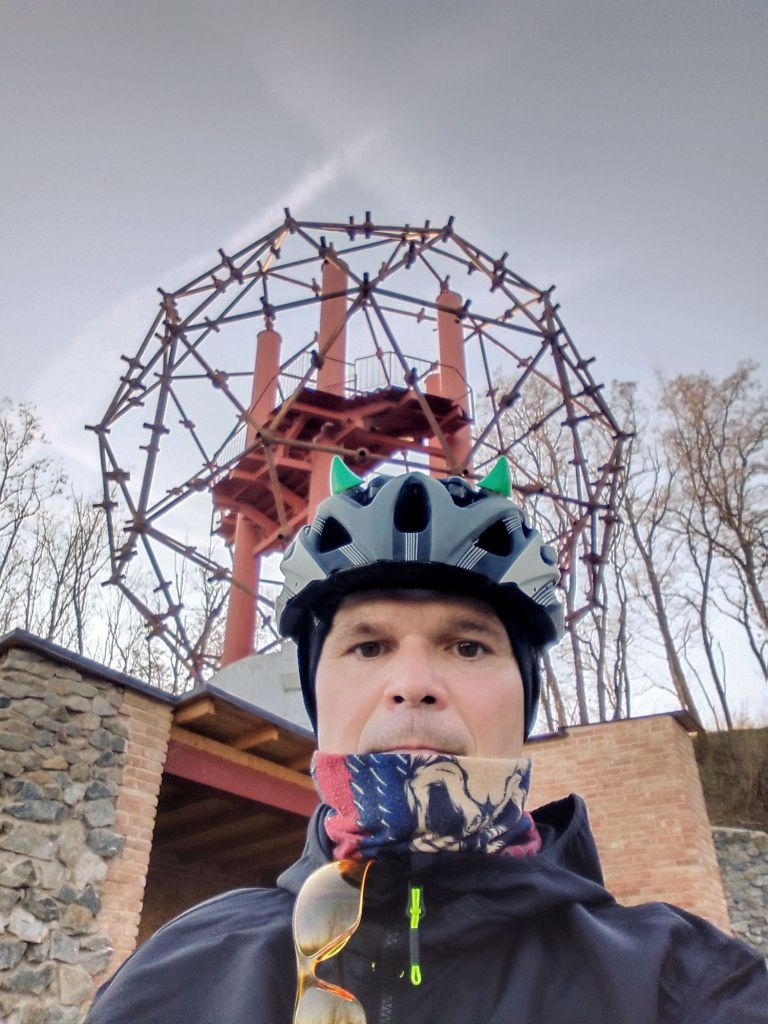 Pro sichr jsem si vrazil do cyklobrašny náhradní termotriko, čapku a vyrazil. V pohodičce téměř mimo silnice přes Jalovisko a Nový Dvůr na památník Bratislavsko-Brněnské operace s rozhlednou ve tvaru kopule. Nikde jsem se nedočetl kolik že schodů vede až na vrchol, tak jsem je počítal, ale až na cestě dolů. Jestli jsem se nesekl, mělo by jich být 75.