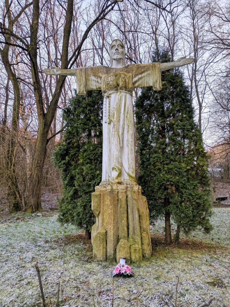 Pokračoval jsem ke Svatému pramenu s křížovou cestou. Tady sem splknul se zajímavým dědem pocházejícím z Banskej. Přijel si z Kurdějova pro dobrou vodu do PETek. A že jich měl. Napočítal jsem jich na kole minimálně 10 (15l). Když vezmu v potaz, že si vyšlape krpál z Nikolčic než bude padat několik km dolů do Kurdějova tak si to kluk ušatý musel užít 🙂. Tady nebylo nic jiného než námraza, která vypadala jako poprašek sněhu a kosa ještě vlezlejší. Tak nic a rychle pryč.
